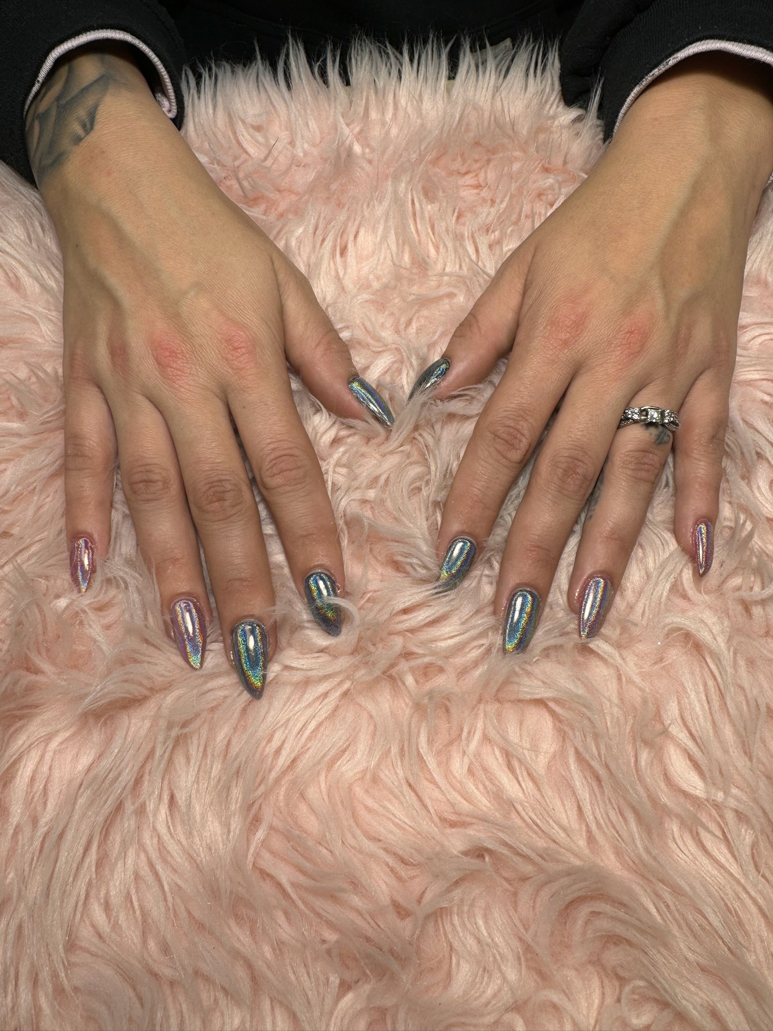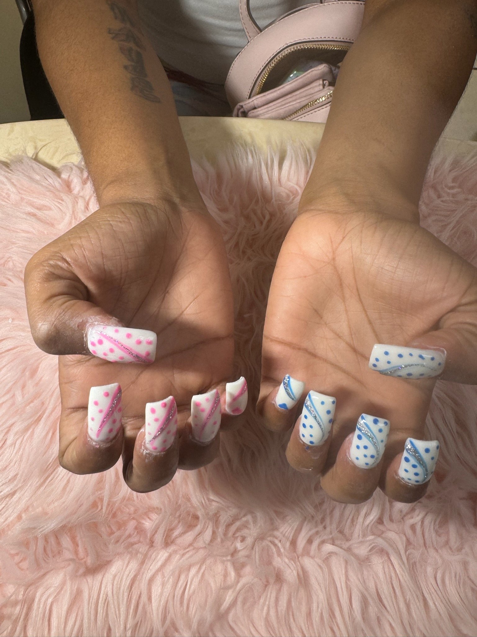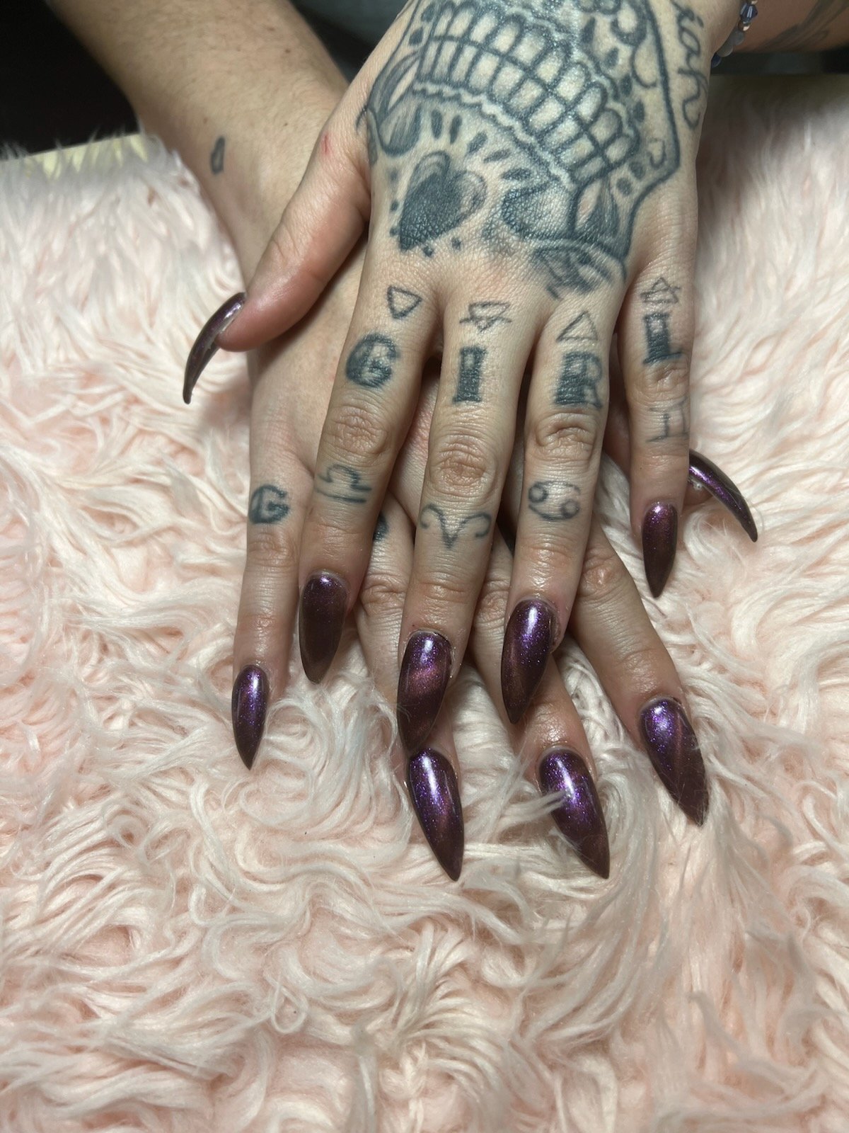 Acrylic nails offer long-lasting durability and customizable styles, perfect for enhancing nail length and strength.